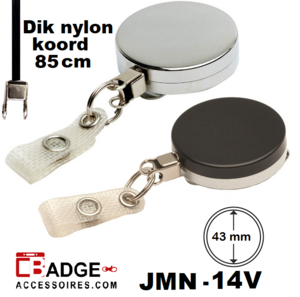 Metalen jojo (43 x 10 mm) met brede stevige riemclip, dik 85 cm nylon koord en vezel versterkt bandje voor intensief dagelijks gebruik. verkrijgbaar in zwart/chroom en geheel...